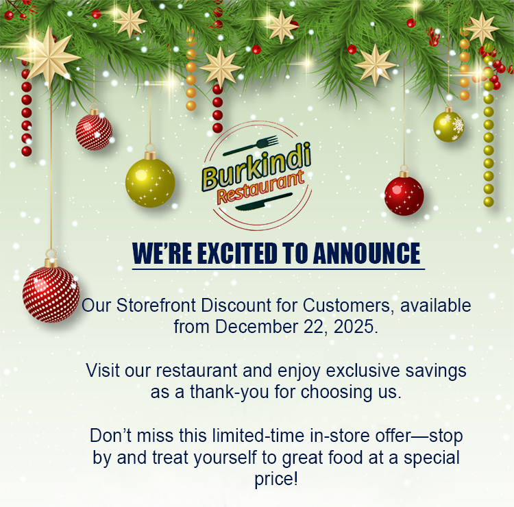 To explore the wonderful African menu of our family-friendly restaurant, please stop by Burkindi Restaurant today!